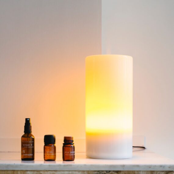 Een diffuser is de ideale manier om je huis onder te dompelen in de juiste geur. RainPharma oprichter Dominique stootte echter op twee problemen: de meeste diffusers zijn niet mooi en de watertank is vaak na enkele uren al leeg. Uit dit idee ontstond de Aurora Diffuser. Deze design diffuser heeft een tank van meer dan 1 liter waardoor je een hele dag kan verstuiven, zonder bij te vullen. Over de watertank zit een mondgeblazen glazen stolp, die in verschillende kleuren bestaat. Zo past de diffuser in elk interieur en verdient het een prominente plaats in huis.
